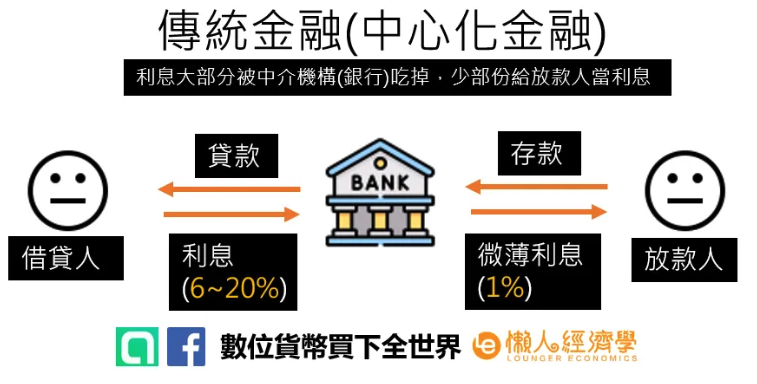 - 全名為 Decentralized Finance,直譯為去中心化金融
