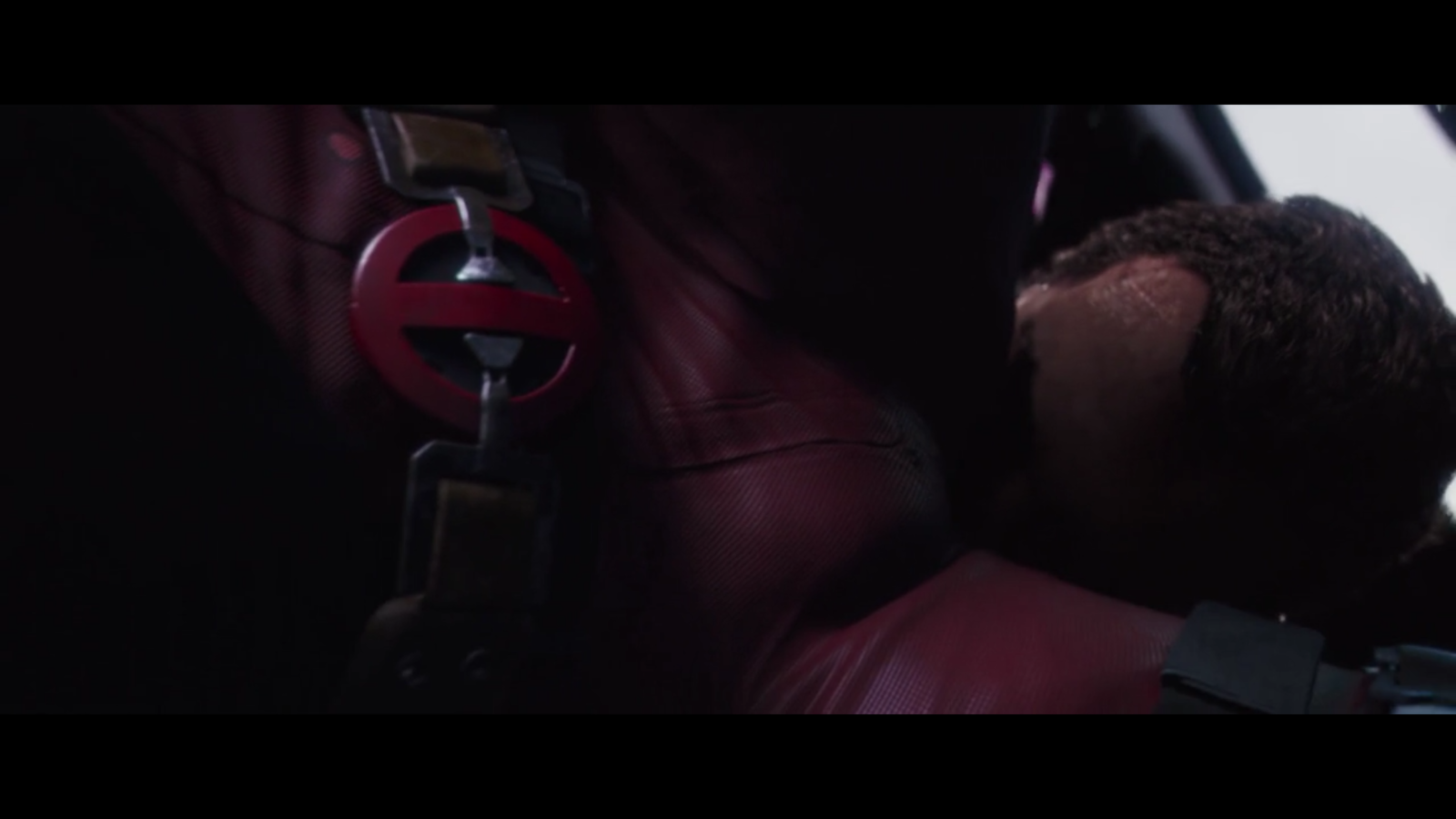 The next shot is when we first see Deadpool and he has someone with their face in his crotch this is another use childish and comedic behaviour. Also deadpool is wearing red which he says is so his enemies don't see him bleed, although in terms of media it represents danger, whihc again adds to the idea i mentioned previously.