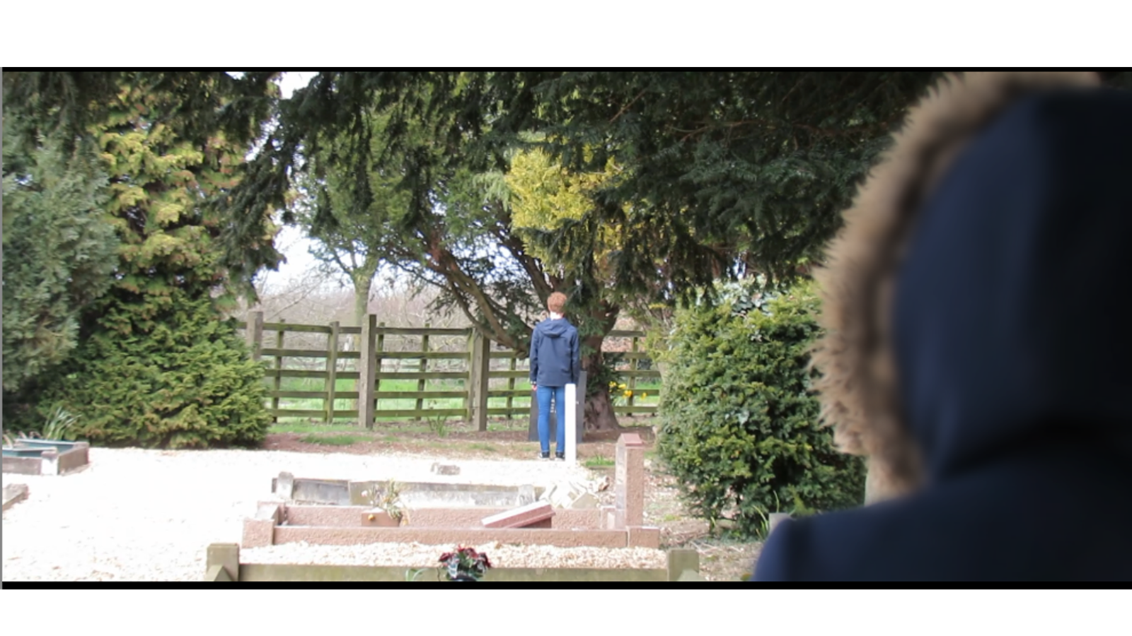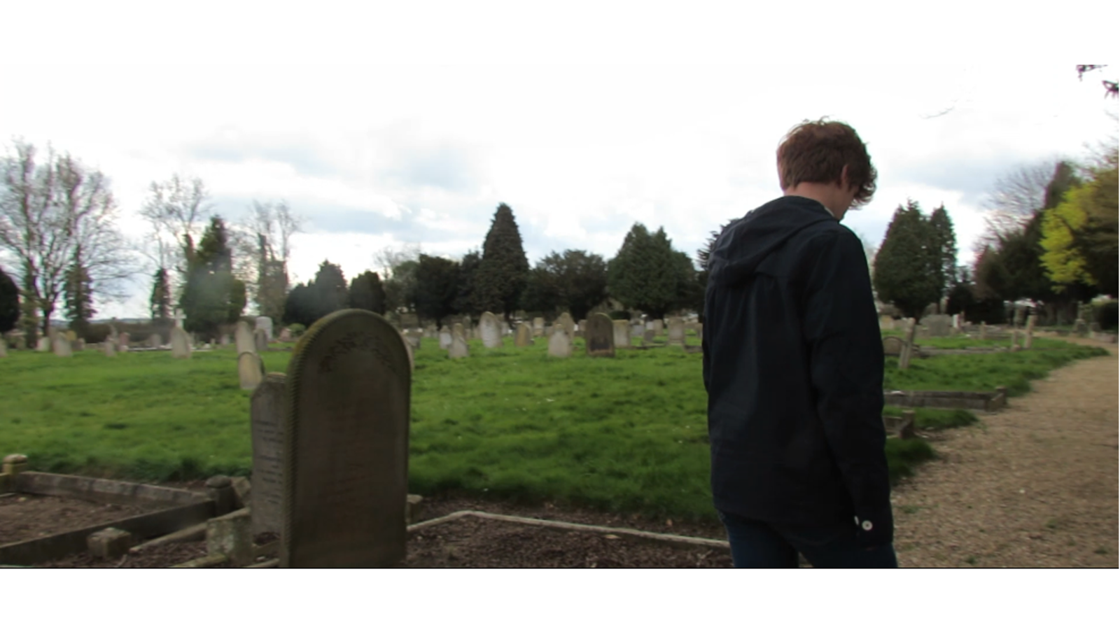 This shot starts by being zoomed in on our characters face this is to show emotion. As they are sad, and we zoomed out so that the grave itself was in shot so the audience knew what the character was looking at. it was also framed at a low angle to show the characters dominance like at the start.