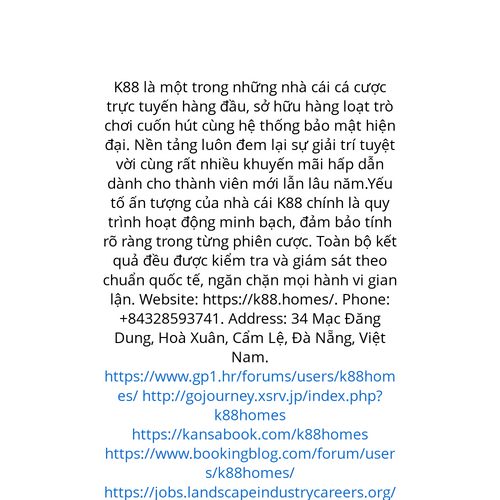 Website: https://k88.homes/. K88 là một trong những nhà cái cá cược trực tuyến hàng đầu, sở hữu vô số game thú vị cùng lớp bảo vệ thông tin cao cấp. Nền tảng luôn đem lại sự giải trí tuyệt vời cùng hàng loạt ưu đãi khủng dành cho tân thủ và game thủ