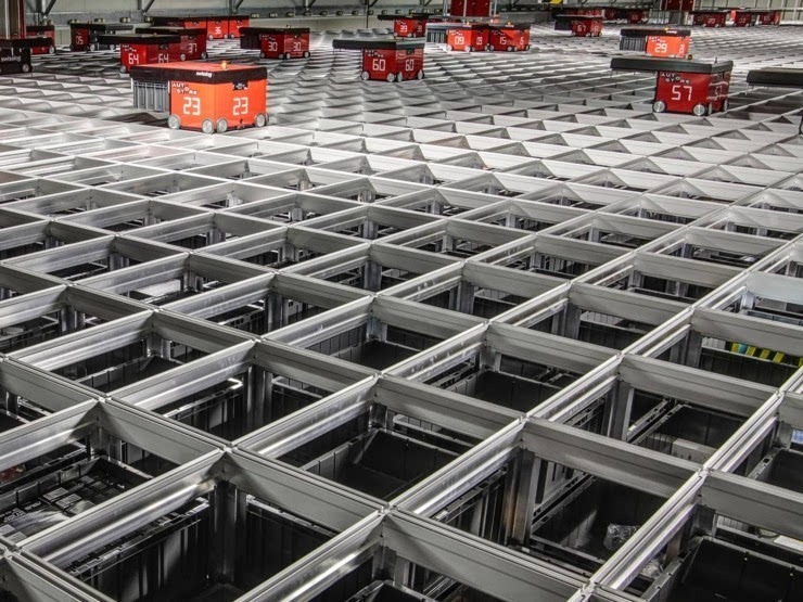 最出名的是仓储管理系统 Click&Pick, 立方体网格系统, 一小时能处理 1 千张订单