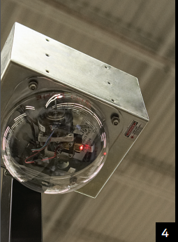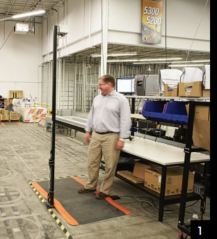 在金属杆上悬挂的激光设备会在将要被检索的产品上照射一个红点