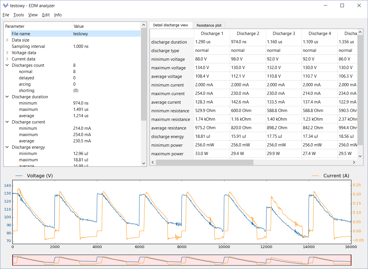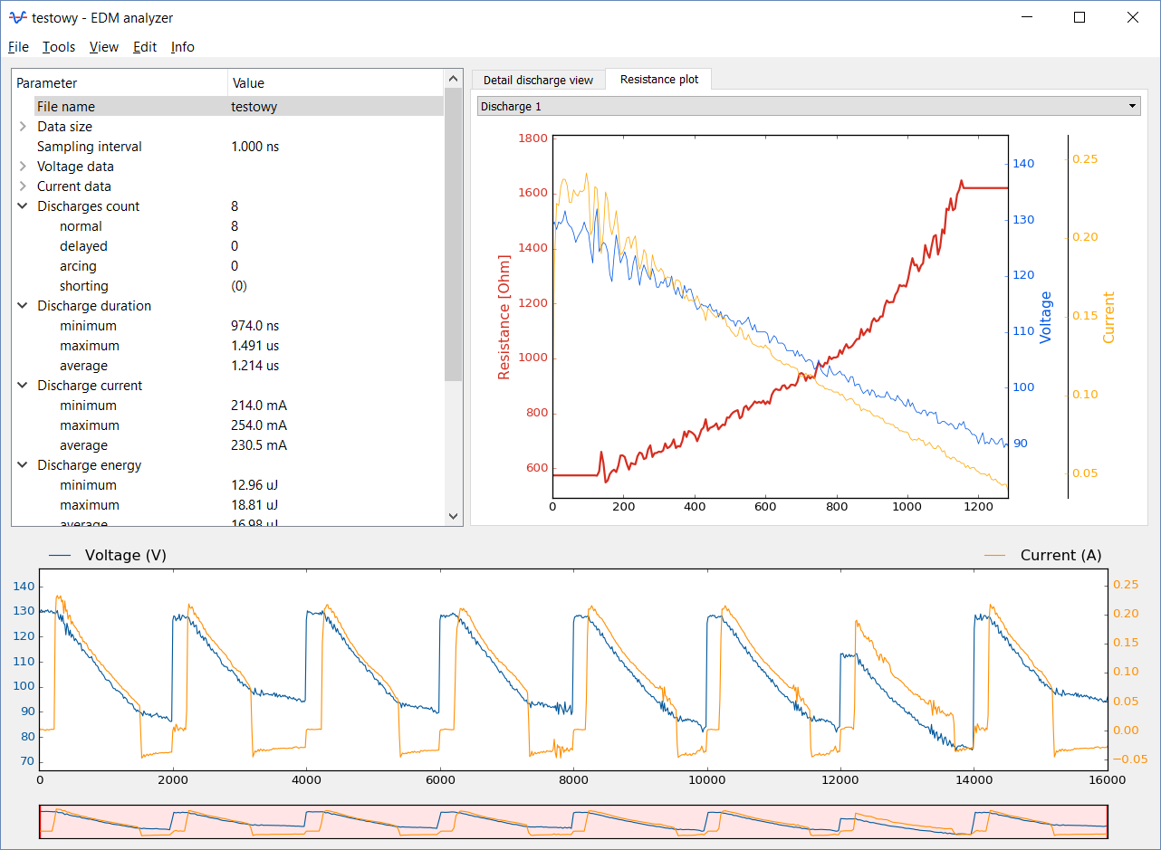 Opracowanie aplikacji do analizy przebiegów napięciowych i prądowych rejestrowanych podczas mikroobróbki elektroerozyjnej