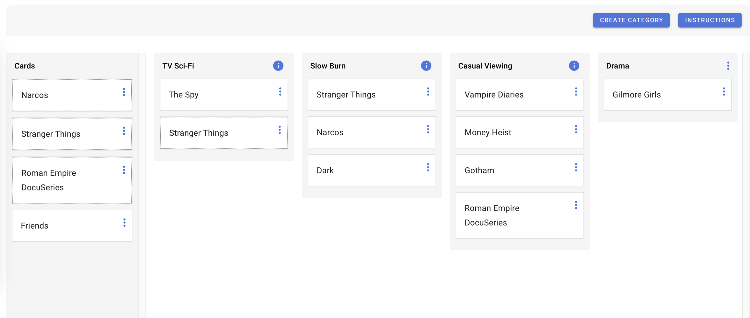 Users organize items (cards) into categories that make sense to them and they may also help you label these groups.