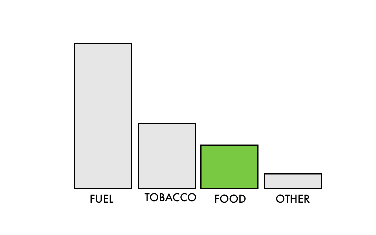 Food is the third biggest income source at gas stations, after fuel and tobacco