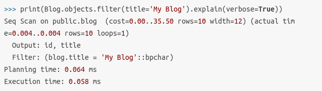 The new Queryset.explain() method shows db execution plan