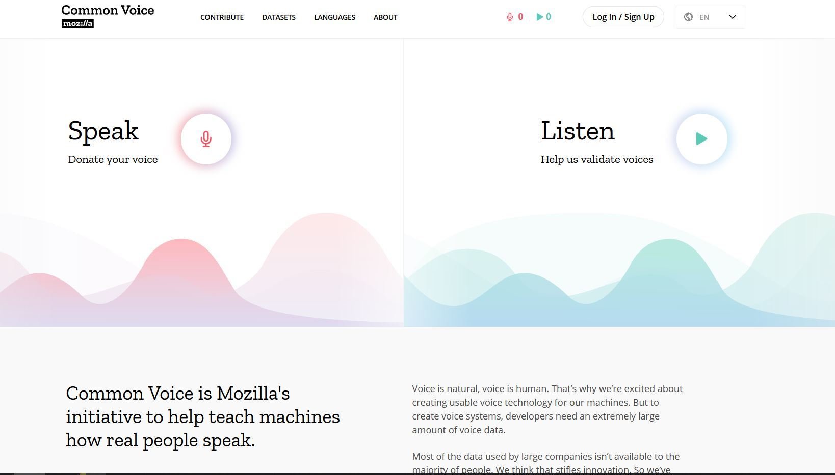 voices available for use, including 18 different languages, adding up to almost 1,400 hours of recorded voice data from more than 42,000 contributors.