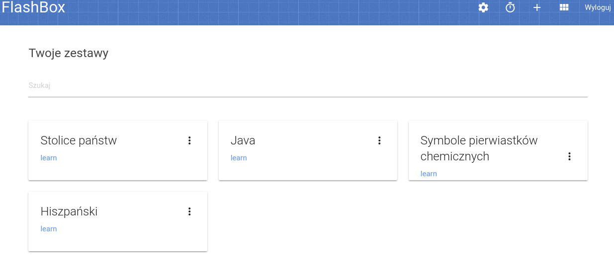 Aplikacja do nauki fiszek, która będzie pozwalać tworzyć nowe zestawy fiszek, edytować istniejące i uczyć się kart z zestawu.