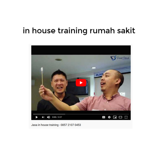 Pelatihan in house training... Manfaat nyata dari in-house training adalah memberi karyawan kesempatan untuk memperluas keterampilan mereka, meningkatkan peluang pengembangan karier. Sumber daya manusia adalah investasi yang paling penting untuk kemajuan suatu perusahaan. http://www.davidsetiadi.com/jasa-in-house-training-dan-team-building/