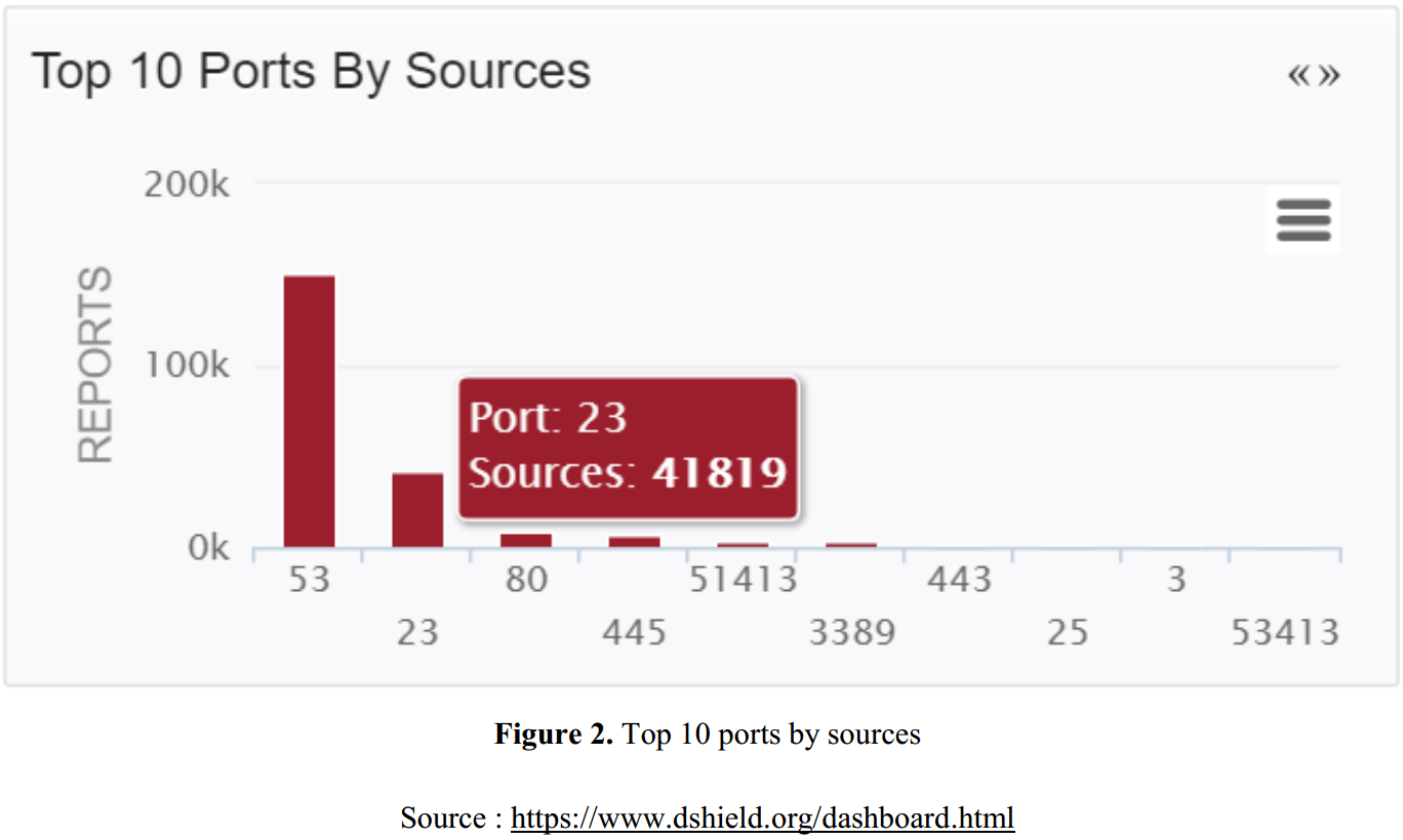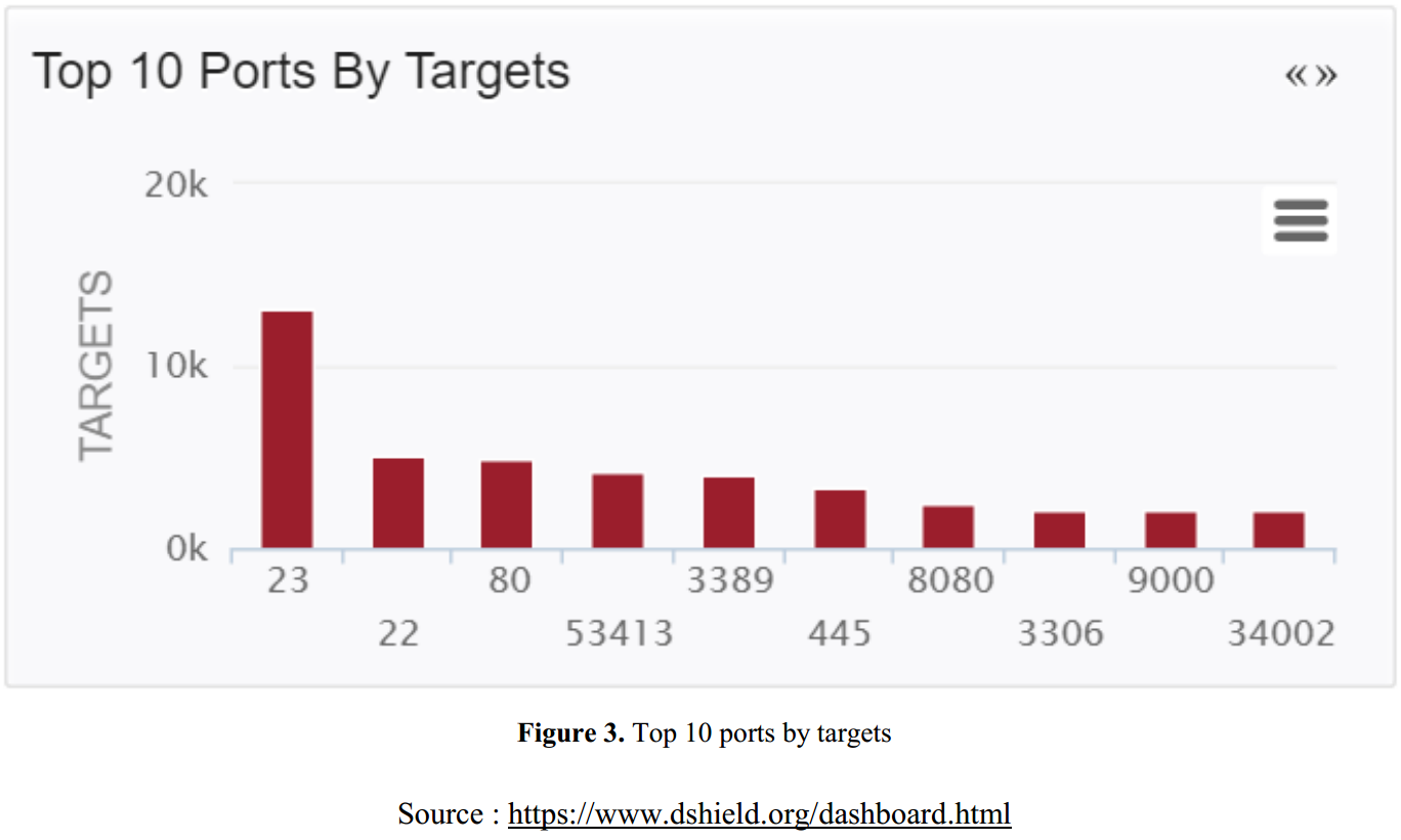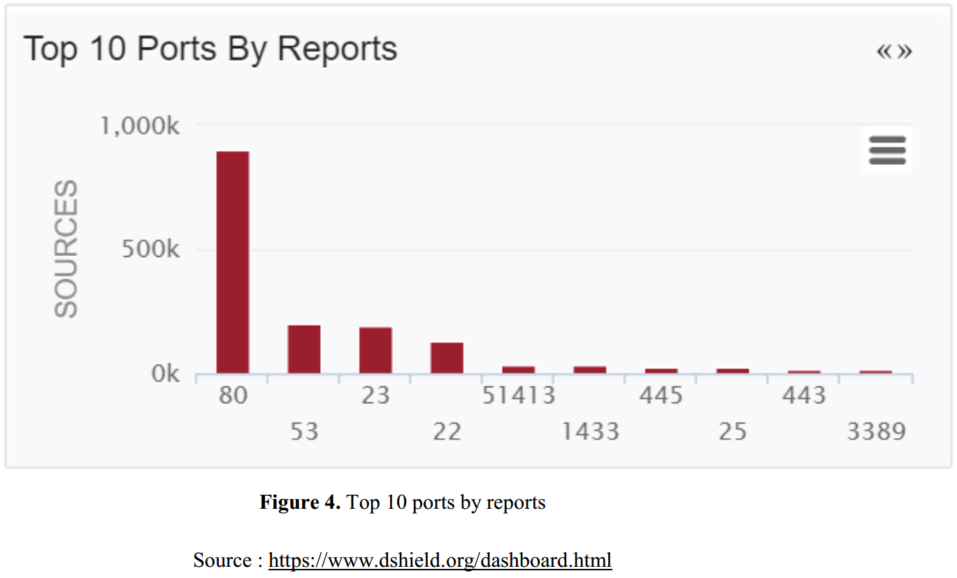 - The most targeted services reported to DShield are port 80, 23, and 22.