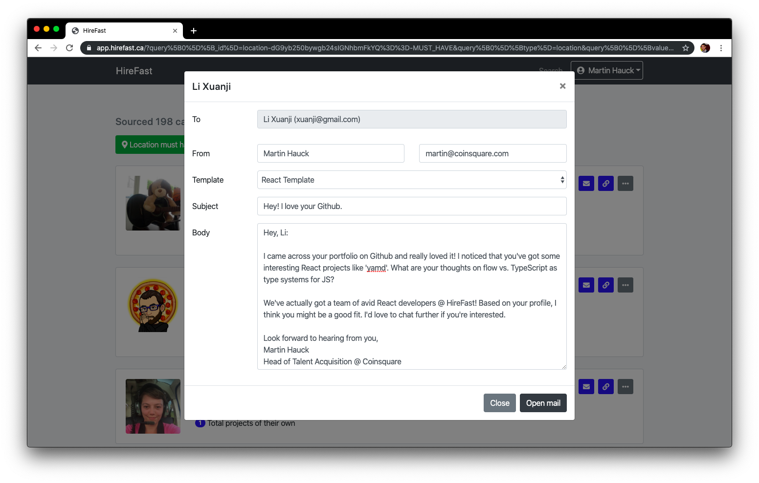 Generate candidate-centric emails