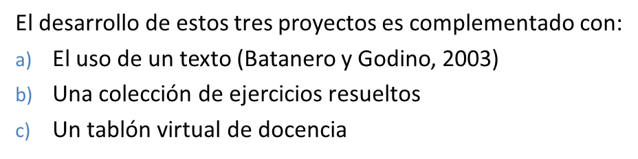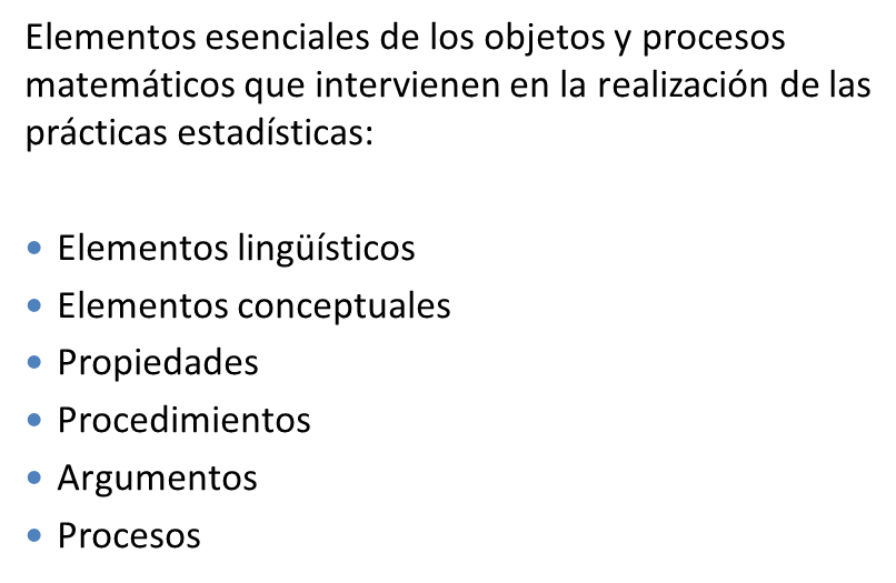 - Prácticas matemáticas: cualquier actuación o expresión realizada por alguien para resolver problemas matemáticos, comunicar a otros la solución obtenida, validarla o generalizarla a otros contextos y problemas (Godino y Batanero, 1994)