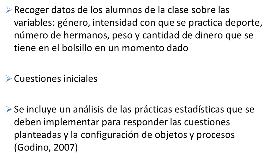 Práctica matemática para la estadística: proyecto de análisis de datos, el cual presenta diferentes fases de investigación (Batanero et al., 2011):