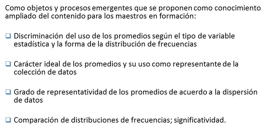 4. Elementos básicos de la fase de estudio preliminar, focalizada en la reconstrucción de un significado de referencia para el contenido de la estadística descriptiva elemental.
