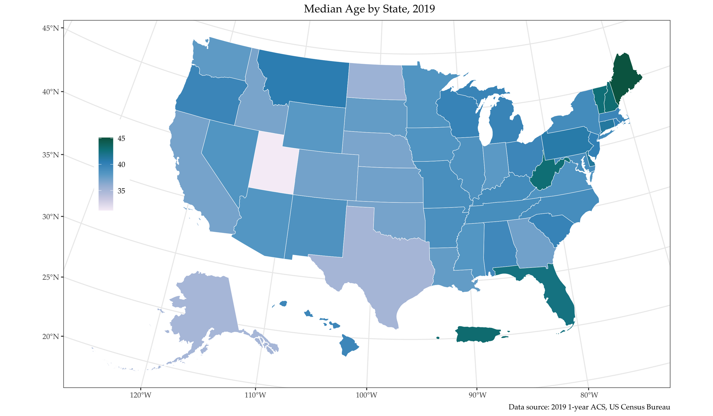 labs(title = " Median Age by State, 2019",