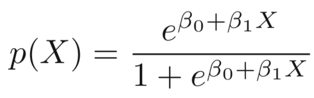 In other words, we try to find \(\beta_{0}\) and \(\beta_{1}\)such that plugging these estimates into the model for p(X) yields a number close to one (1) for all individuals that fulfill the on condition (e.g. default) and a number close to zero for all individuals of off condition (e.g. not default).