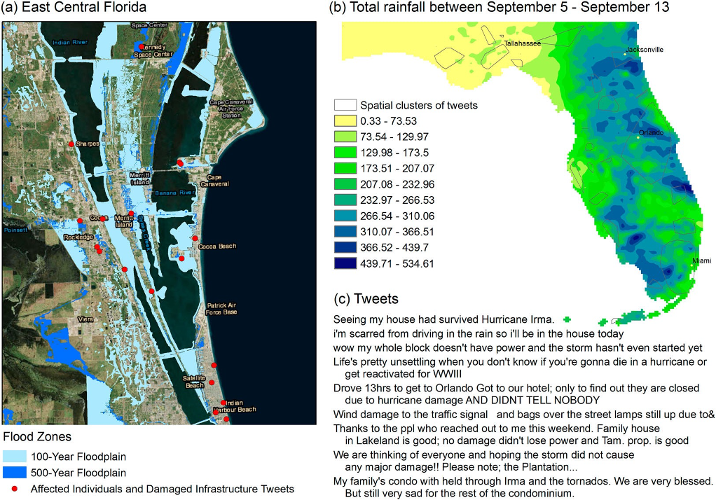 Sit, Muhammed Ali, Caglar Koylu, and Ibrahim Demir. 2019. "Identifying disaster-related tweets and their semantic, spatial and temporal context using deep learning, natural language processing and spatial analysis: a case study of Hurricane Irma." International Journal of Digital Earth.