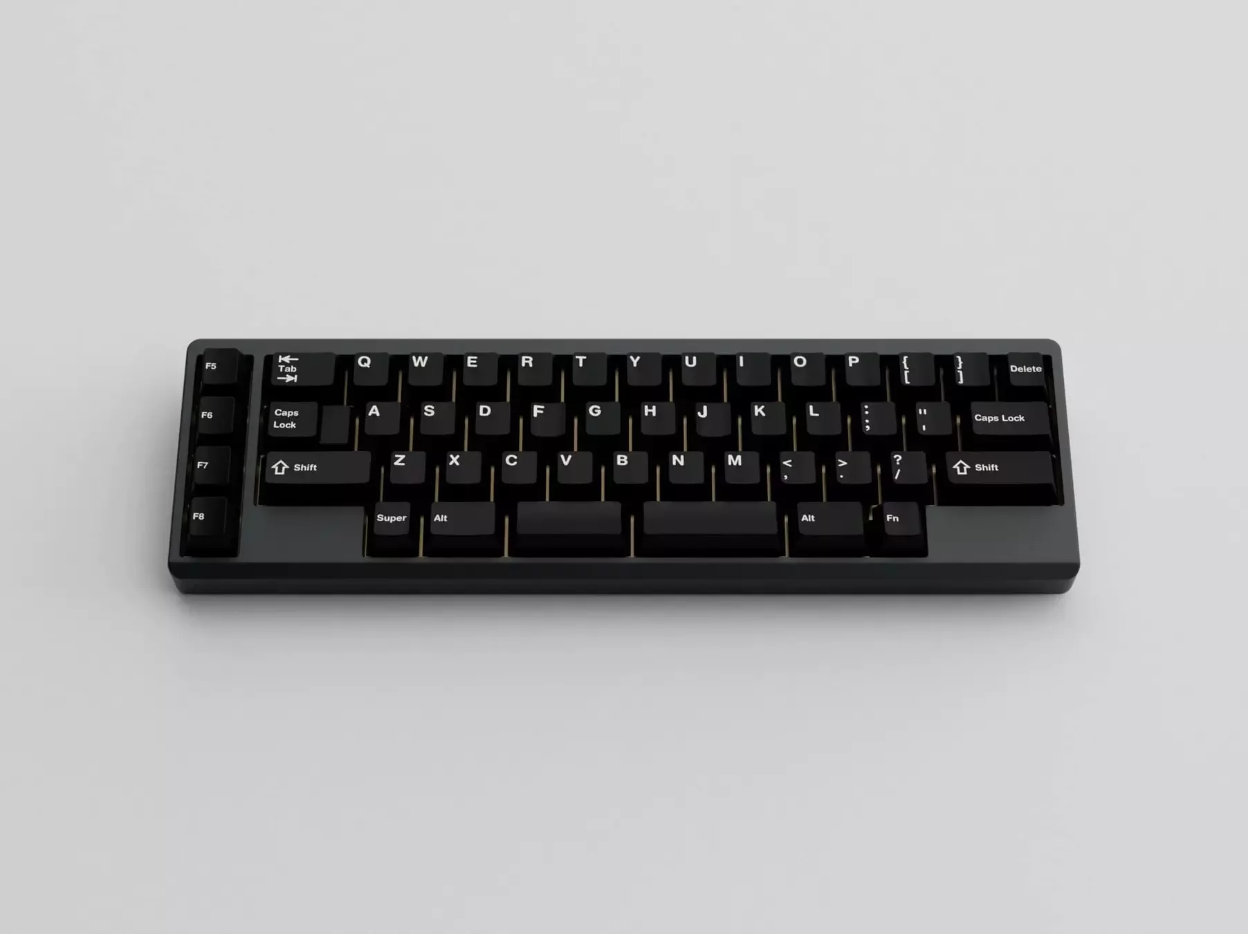Missing keys: number pad, navigation keys, function keys, arrow keys, number row