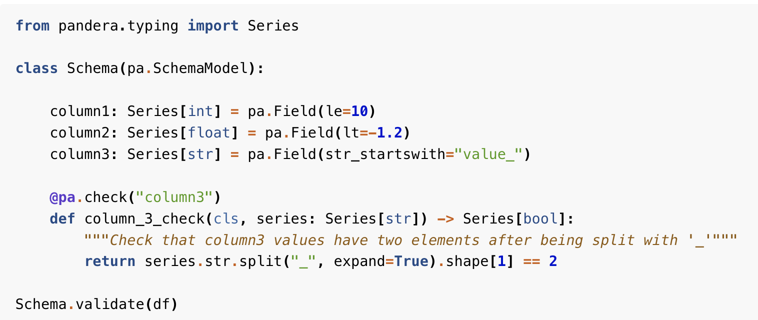 pandas.Series(['foo', 'bar', 'foobar'], dtype='string[pyarrow]')Типы вместе с pandera