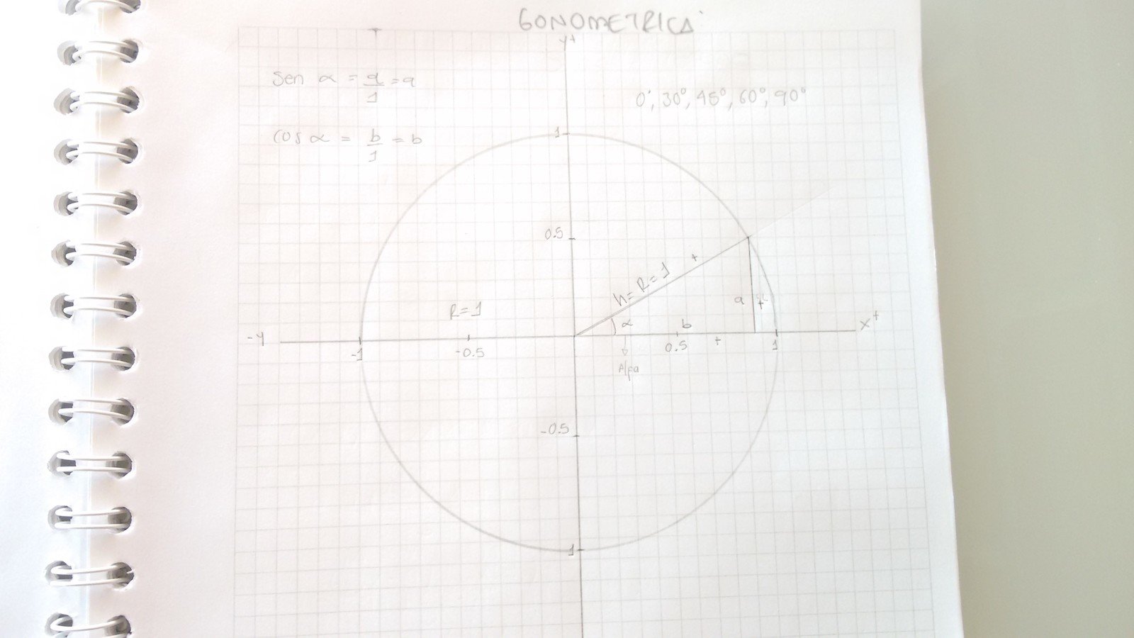 La circunferencia goniométrica es una circunferencia de radio uno, normalmente con su centro en el origen (0, 0) de un sistema de coordenadas, de un plano euclídeo o complejo.