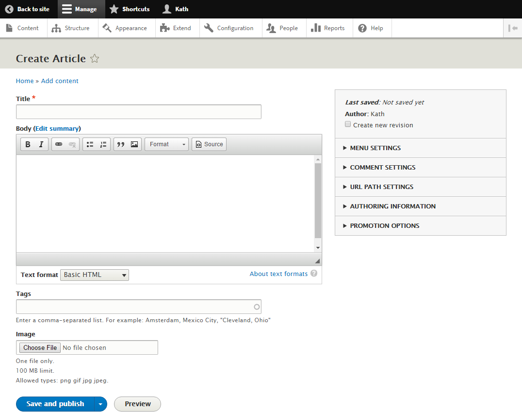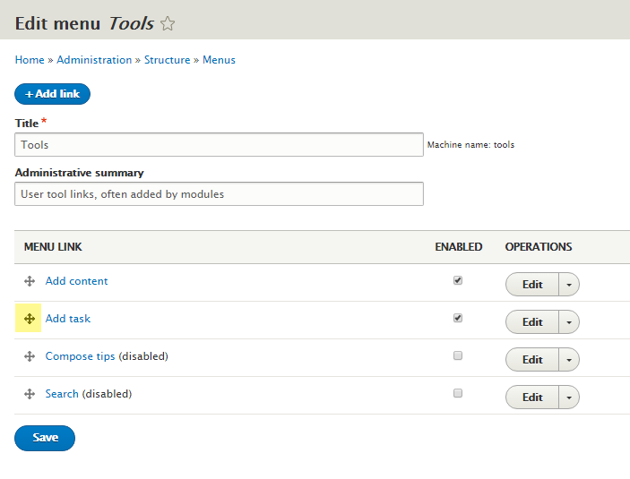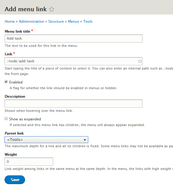 Drupal's menus are kind of weird. Follow along and don't be afraid to ask questions.