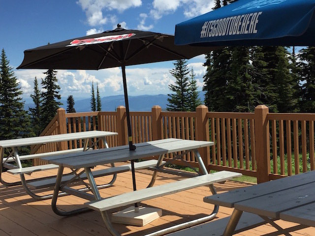 Mid-mountain, the sunburst lodge has a nice deck cafe, a view of the ski-in chapel, and lots of washrooms with mirrors for full-length sweaty selfies!