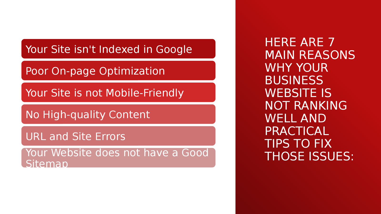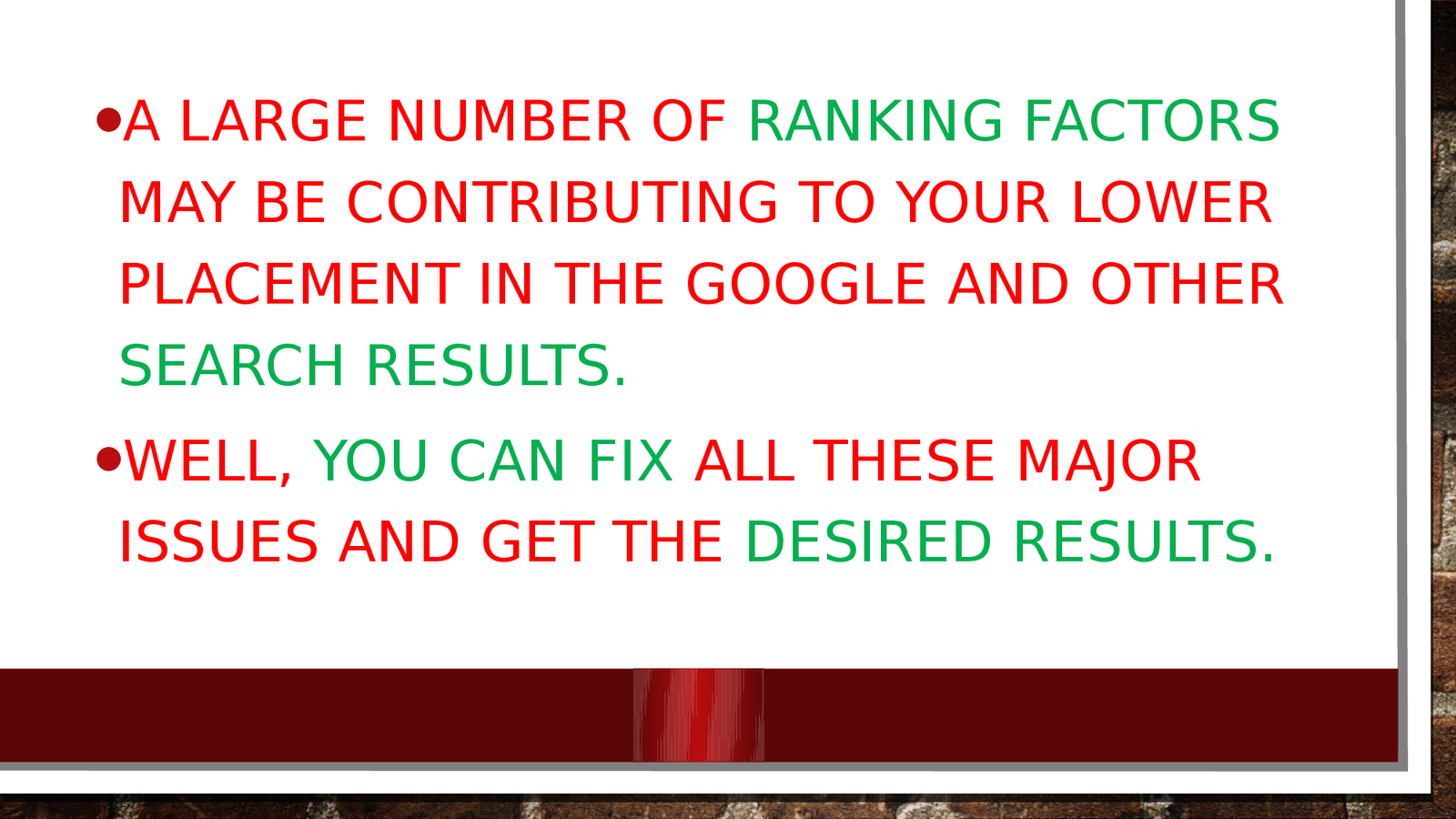 A large number of ranking factors may be contributing to your lower placement in the Google and other search results. Here are 6 main reasons why your business website is not ranking well and practical tips to fix them.