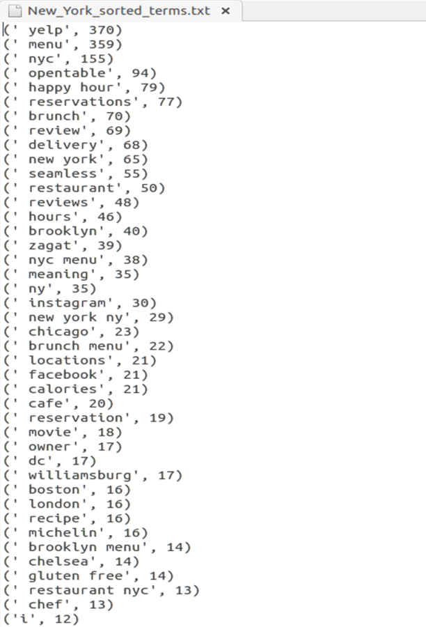 - Takes the resulting top N terms from all input files and consolidates them into one file, finding the phrases with the most occurrences overall