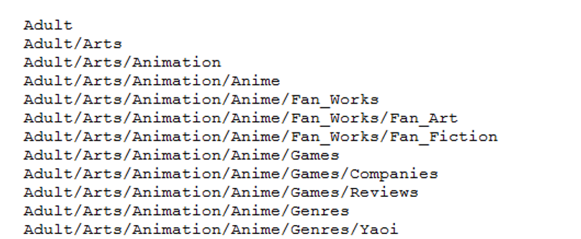 - categories.txt from DMOZ (802287)