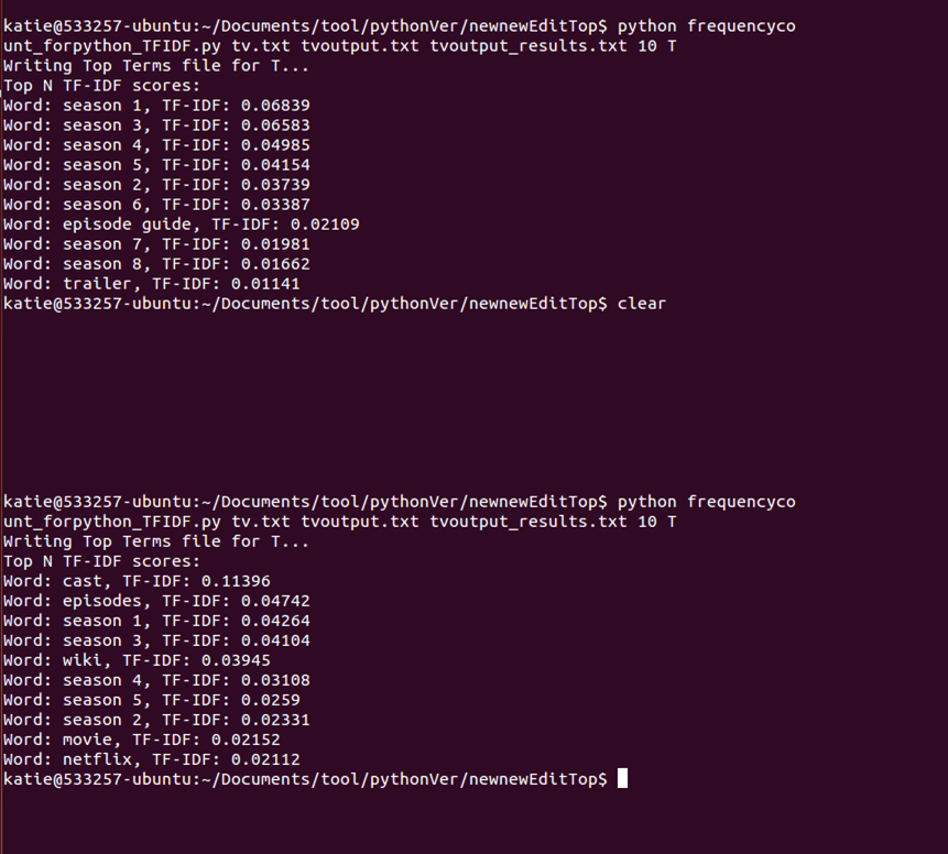 - Method 2: Use TF-IDF+DMOZ to remove the commonalities and recalculate the topN.