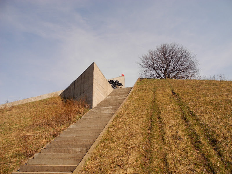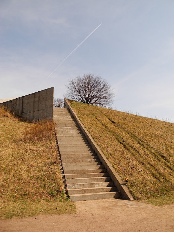 Это один из наиболее величественных памятников "Зеленого пояса Славы". Склоны 20-метрового насыпного холма, похожего на пирамиду, покрыты дёрном; есть смотровые площадки, выполненные в виде остроугольных выступов, к которым ведут лестницы. На верхней площадке находятся бронзовые скульптуры, на выступах площадок помещены мемориальные надписи.