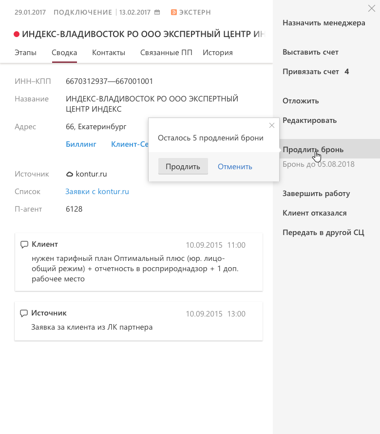 Добронирование клиента в Партнерке