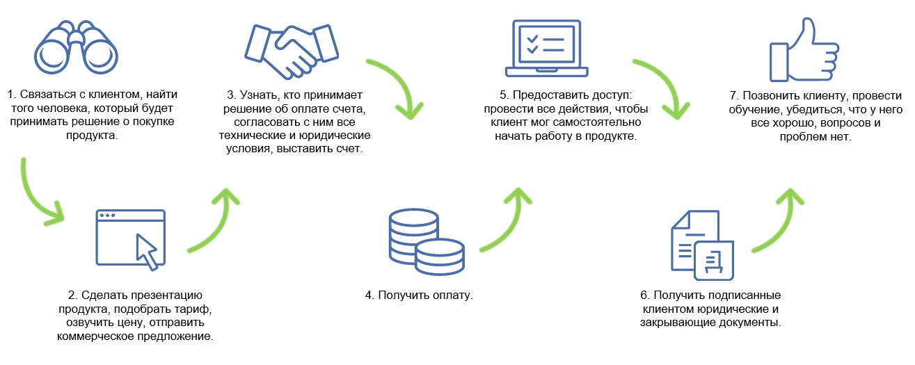 Цикл продаж состоит из этапов, имеющих свою последовательность, соблюдая которую можно любой разговор с потенциальным клиентом превратить в эффективную беседу, с последующим долгосрочным сотрудничеством.