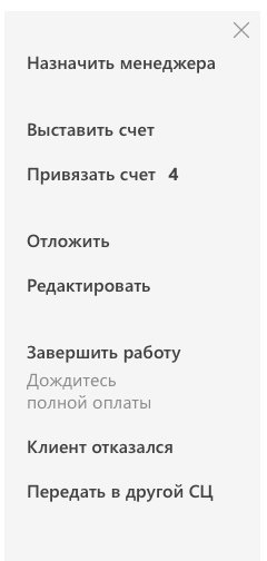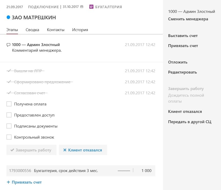 -- на этапе переговоров до выставления счета партнеры используют свои собственные CRM, Excel, потенциальные продажи в Биллинге;