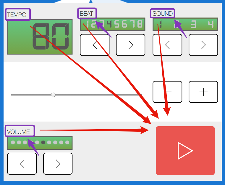 サービスは4つ作成しステートを管理します。再生ボタンで各ステートを読み込んで音を鳴らします