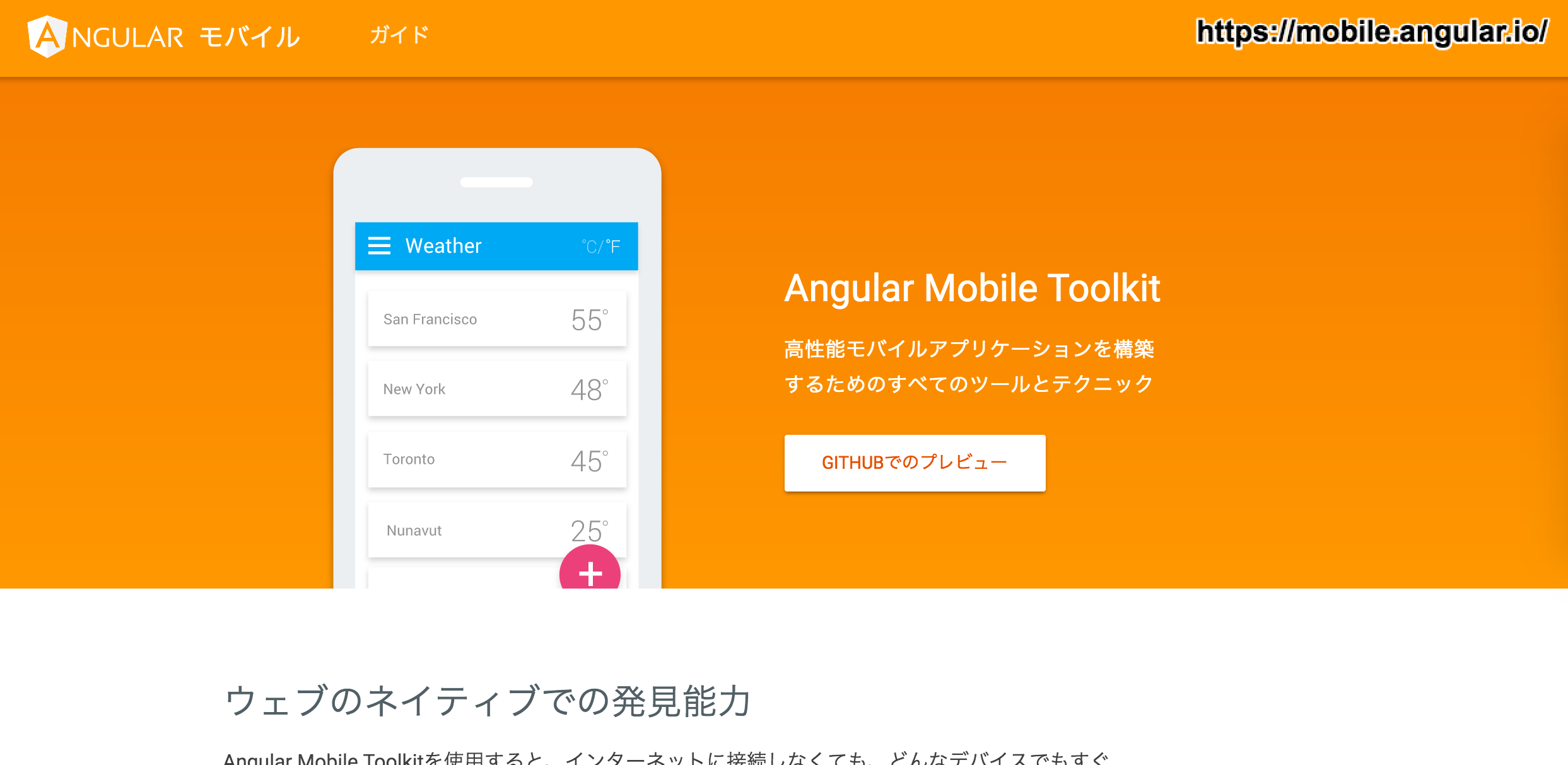 Angular Mobile Toolkitを導入すると、簡単にPWA対応が行なえます