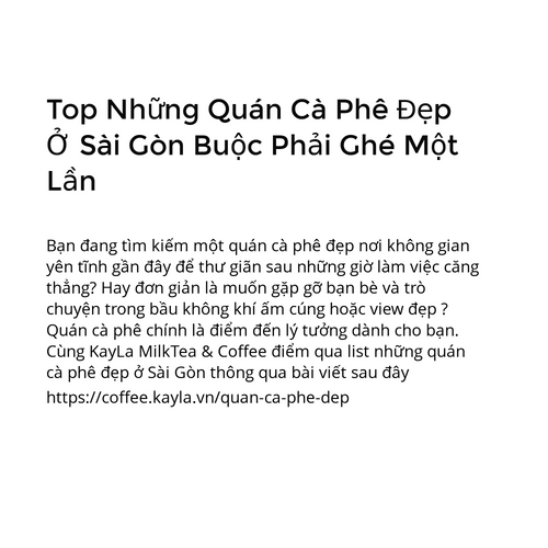 Kayla Coffee là điểm đến lý tưởng cho những ai muốn tìm kiếm một không gian thoải mái để học tập, làm việc, hoặc đơn giản là trò chuyện cùng bạn bè. Quán cà phê mang đến sự kết hợp hoàn hảo giữa hương vị cà phê thơm ngon và bầu không khí ấm cúng, giú