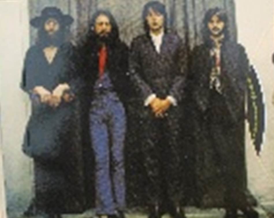 On the inside of the Digipak, there are three photographs of The Beatles. They were included within the Digipak because any fan of a band/artist loves to see images of their favourite artists. They aim to please their target audience and promote them as Rock artists. The choice to include full body shots of the band connote their Rock genre. They are wearing denim clothes and are standing in a stereotypical way which portrays the "musicianship" of the Rock genre. These photos could be treated as having sentimental value to their fans and are worth a lot of money. It captivates the audience to buy their idol's albums.