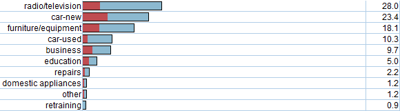 بیشترین مبالغ به ترتیب برای خودروی دست دو، کسبوکار و تحصیلات است.