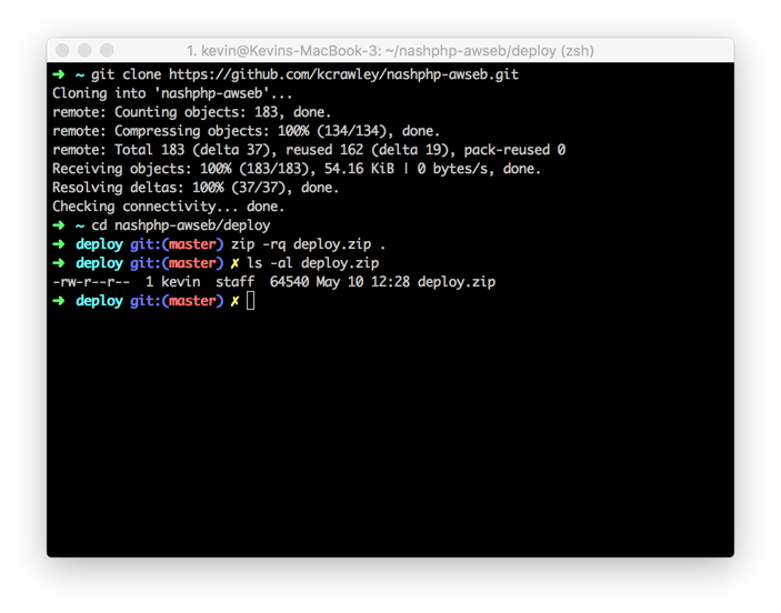 - Clone this repository: https://github.com/kcrawley/nashphp-awseb.git