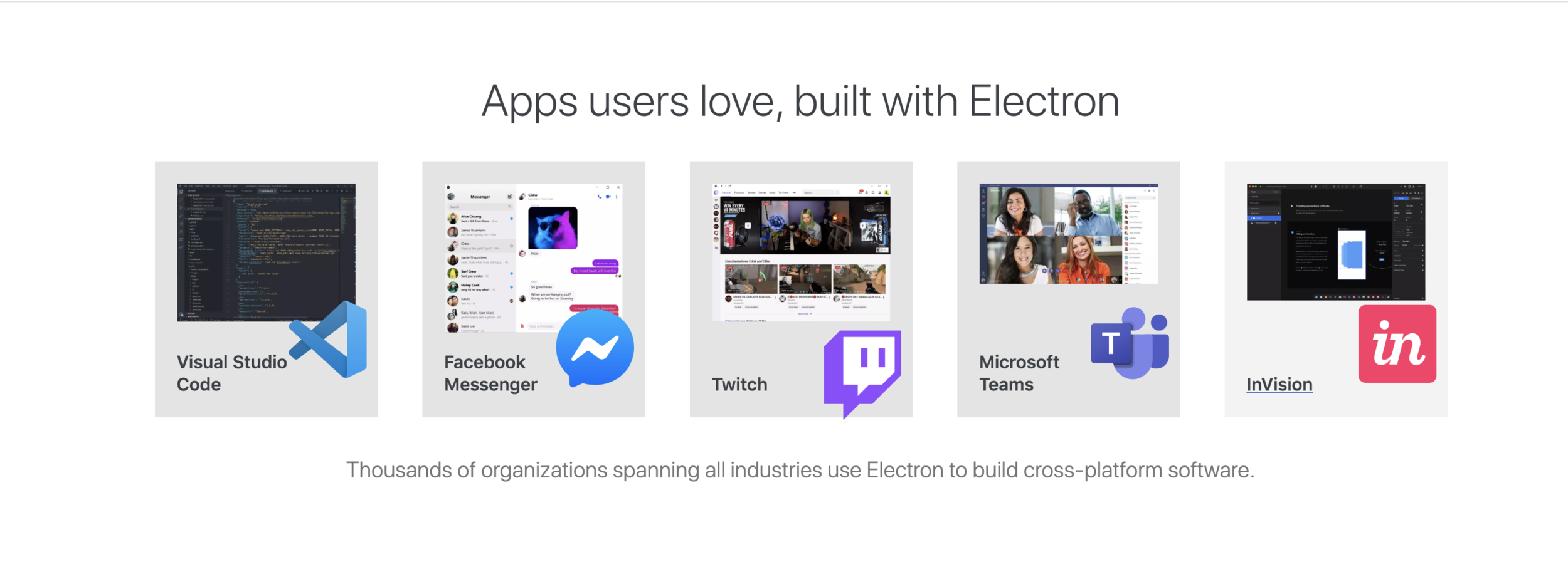Electron is an open-source software framework developed and maintained by GitHub. It allows for the development of desktop GUI applications using web technologies