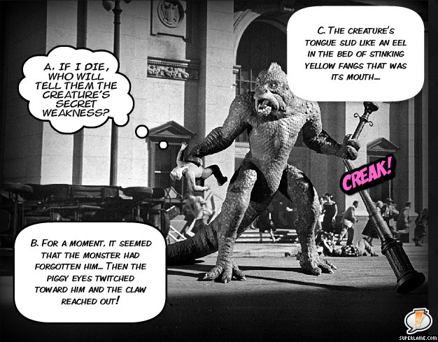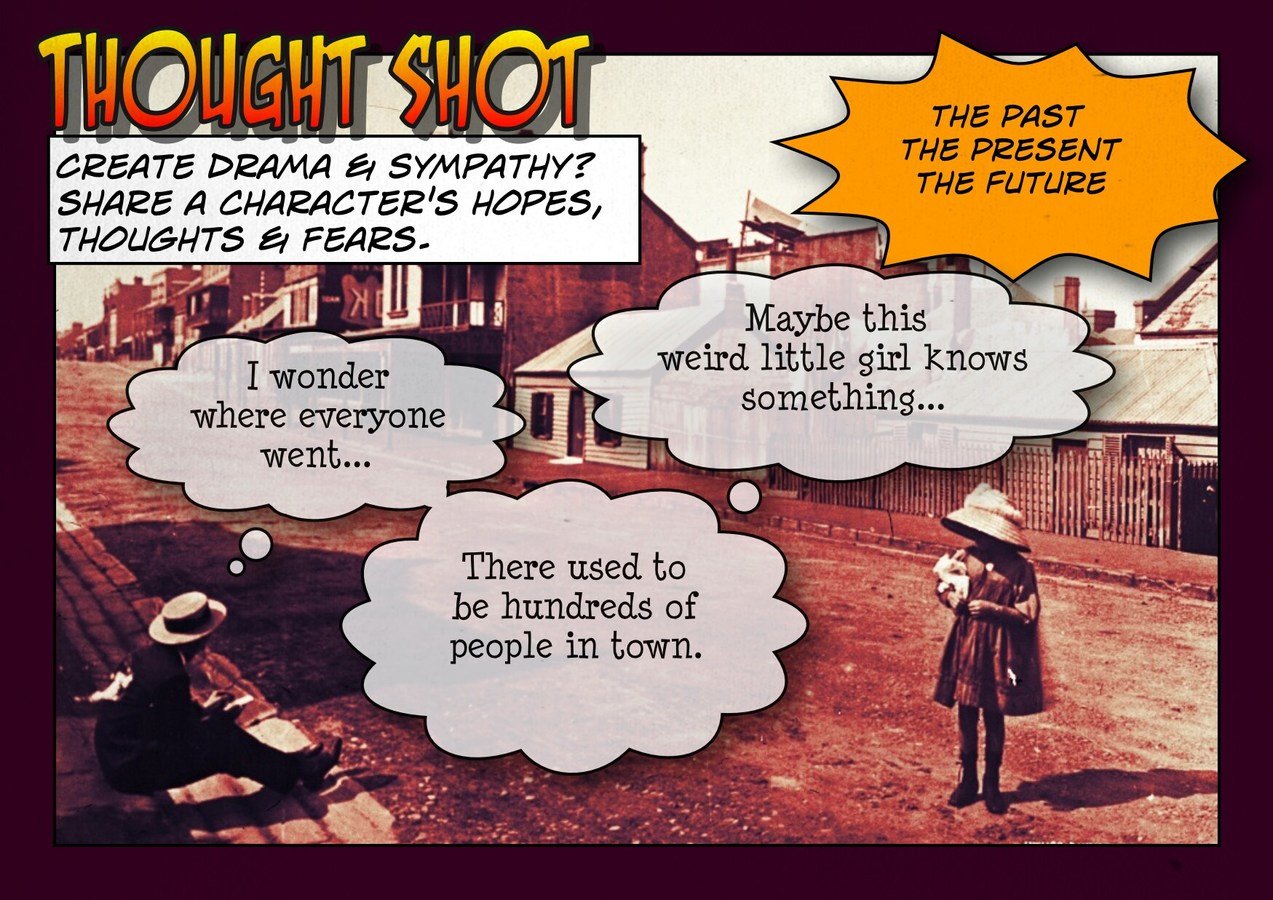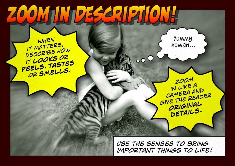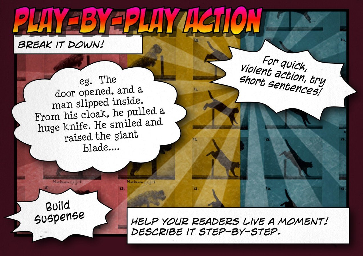 Increasing the suspense by zooming in, sharing thoughts, and slowing down the action.