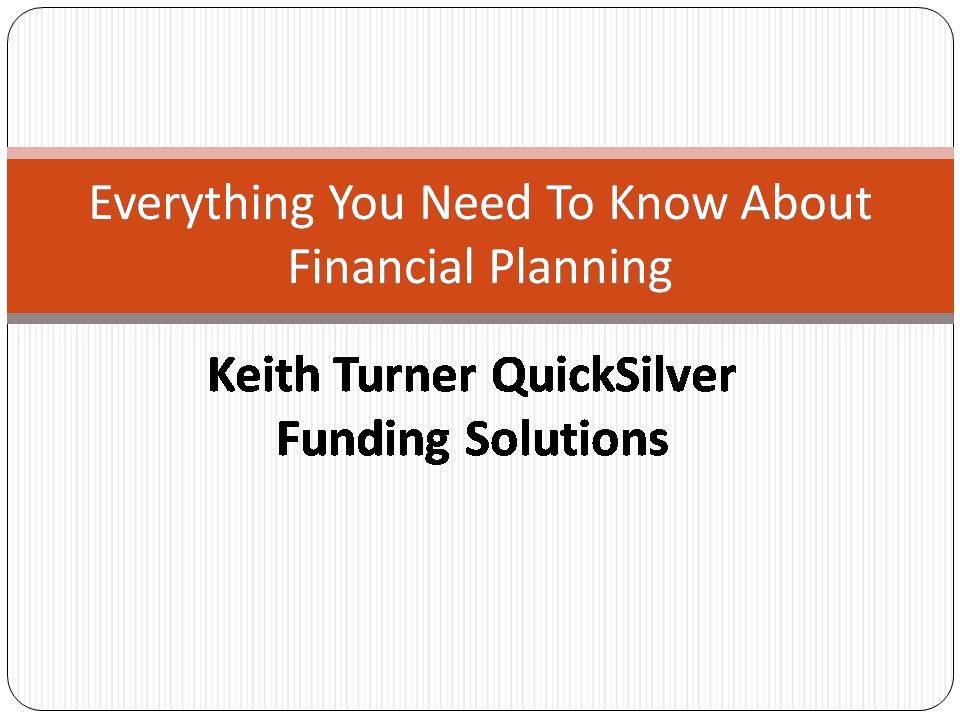 Keith Turner QuickSilver Funding Solutions - Everything You Need To Know About Financial Planning