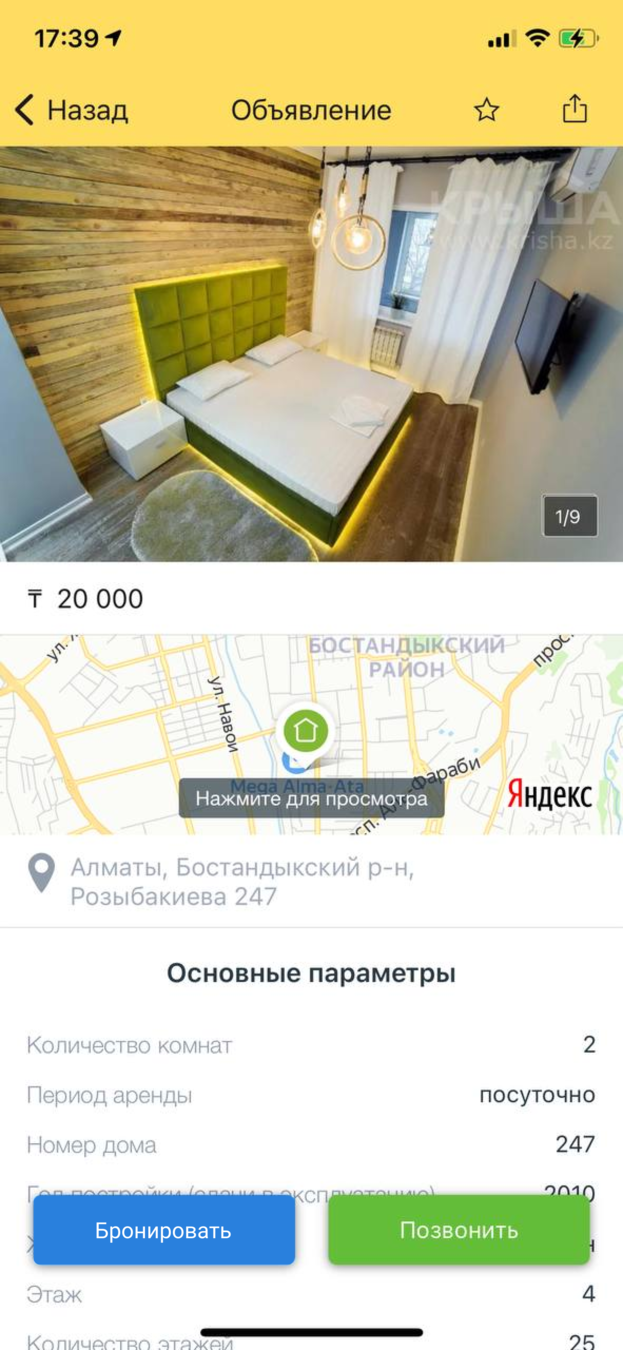 Только актуальные данные о наличии свободных квартир, данные передаются через API