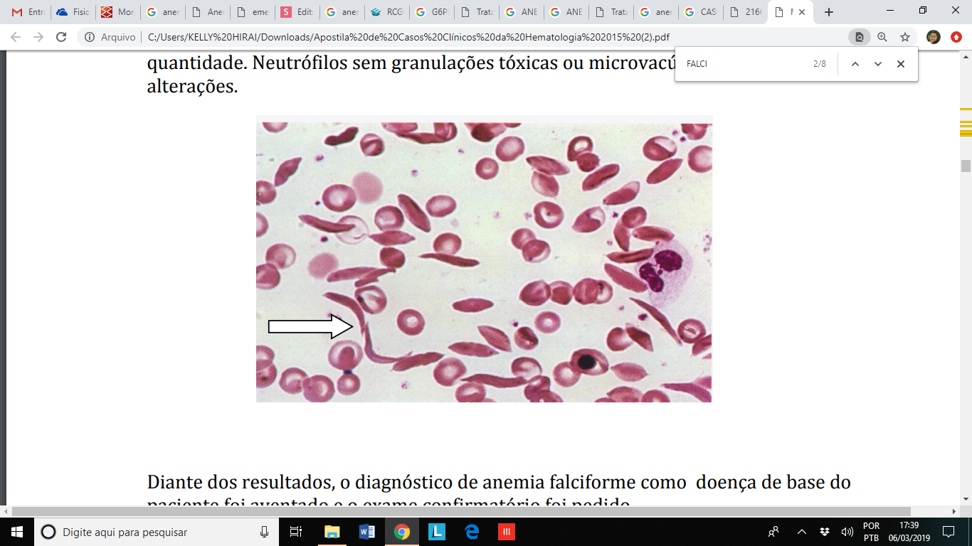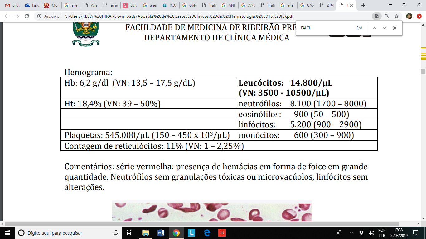 PRESENÇA DE DREPANÓCITOS OU HEMÁCIAS EM FORMA DE "FOICE"