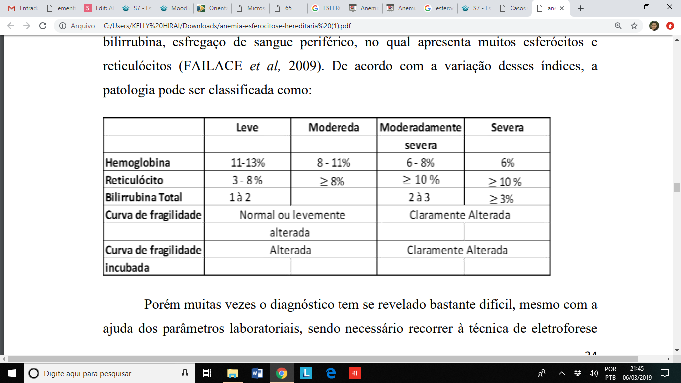 PARÂMETROS LABORATORIAIS E CLASSIFICAÇÃO DA ESFEROCITOSE HEREDITÁRIA