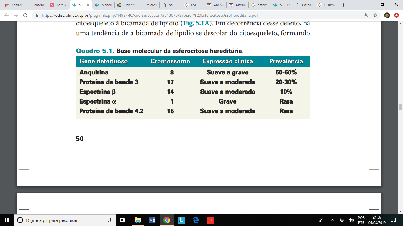 DEFEITOS NA MEMBRANA (ESFEROCITOSE)