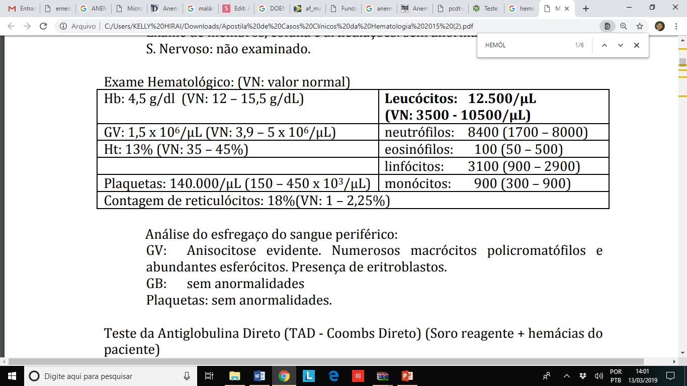 ANEMIAS POR DESTRUIÇÃO PERIFÉRICA AOS ERITRÓCITOS