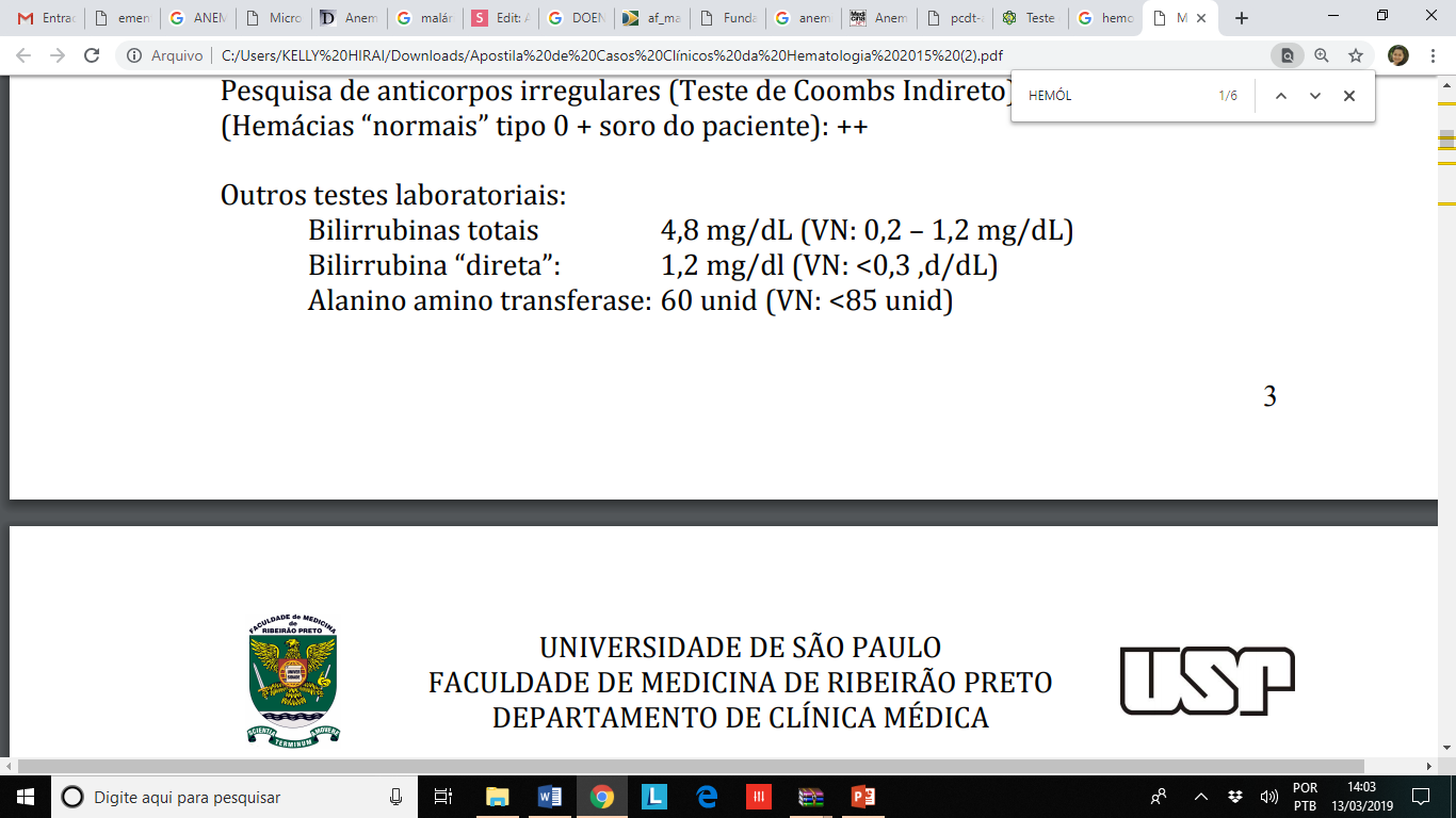 HEMATOLOGIA CLÍNICA - ANEMIAS POR DESTRUIÇÃO PERIFÉRICA DOS ERITRÓCITOS