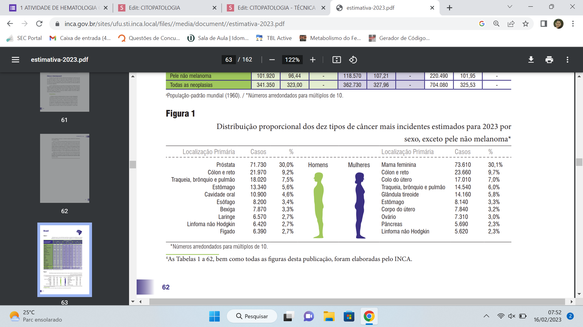 Estimativas de novos casos: 17.010 (INCA,2022)